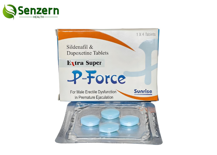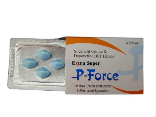 Extra Super P-Force is a new combination tablet containing two of the most potent and effective pharmaceuticals proven to combat the major causes of male se xual dysfunction, premature ejaculation and erectile dysfunction. The active ingredients of Extra Super P-Force are Silde nafil Citrate and Dapo xetine. Silde nafil Citrate belongs to the PDE-5 family of vasodilators. These drugs work by dilating the blood vessels in the body particularly around the genital area. This in turn, allows stronger blood flow to enable an erection to take place. Dapo xetine belongs to the family of (SSRI) serotonin reuptake inhibitors. It is the only drug with regulatory approval for treatment of premature ejaculation.